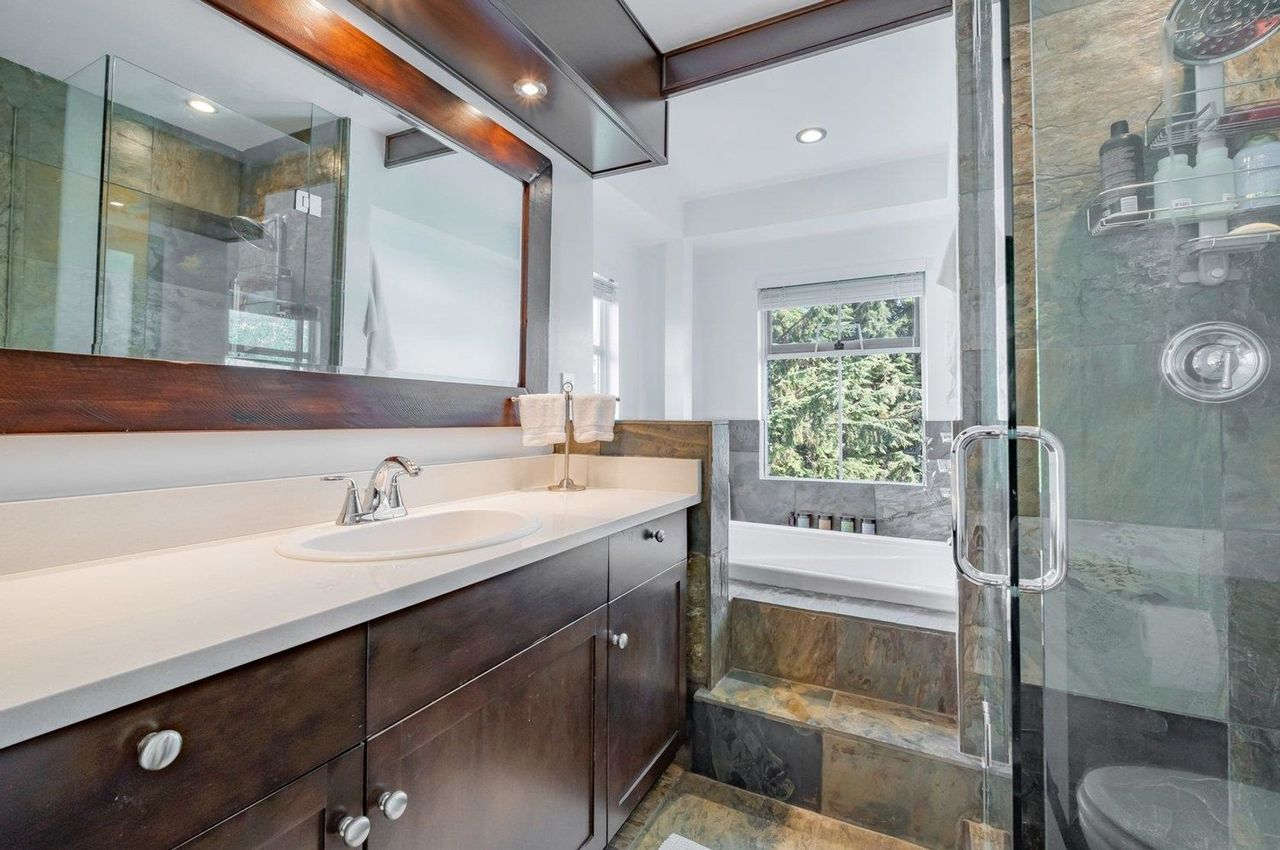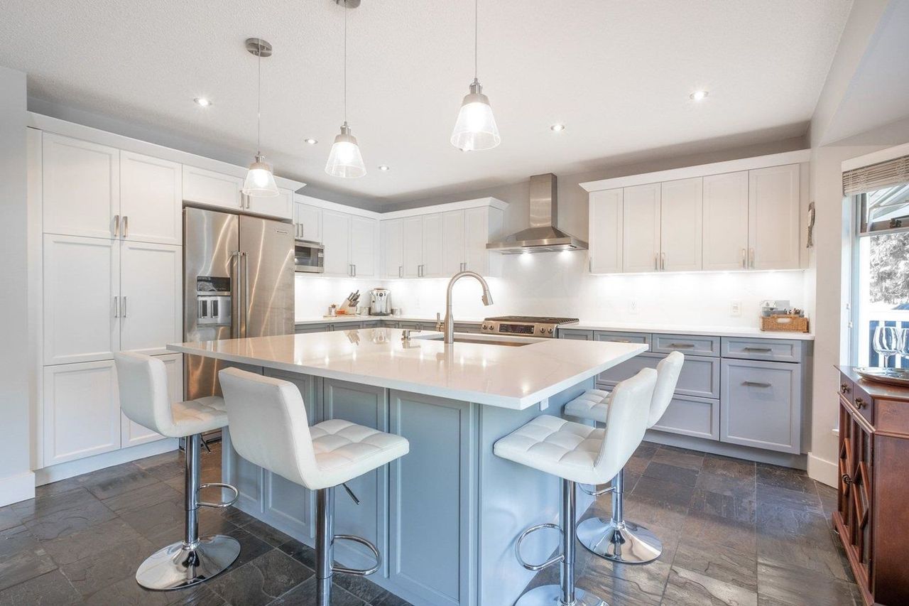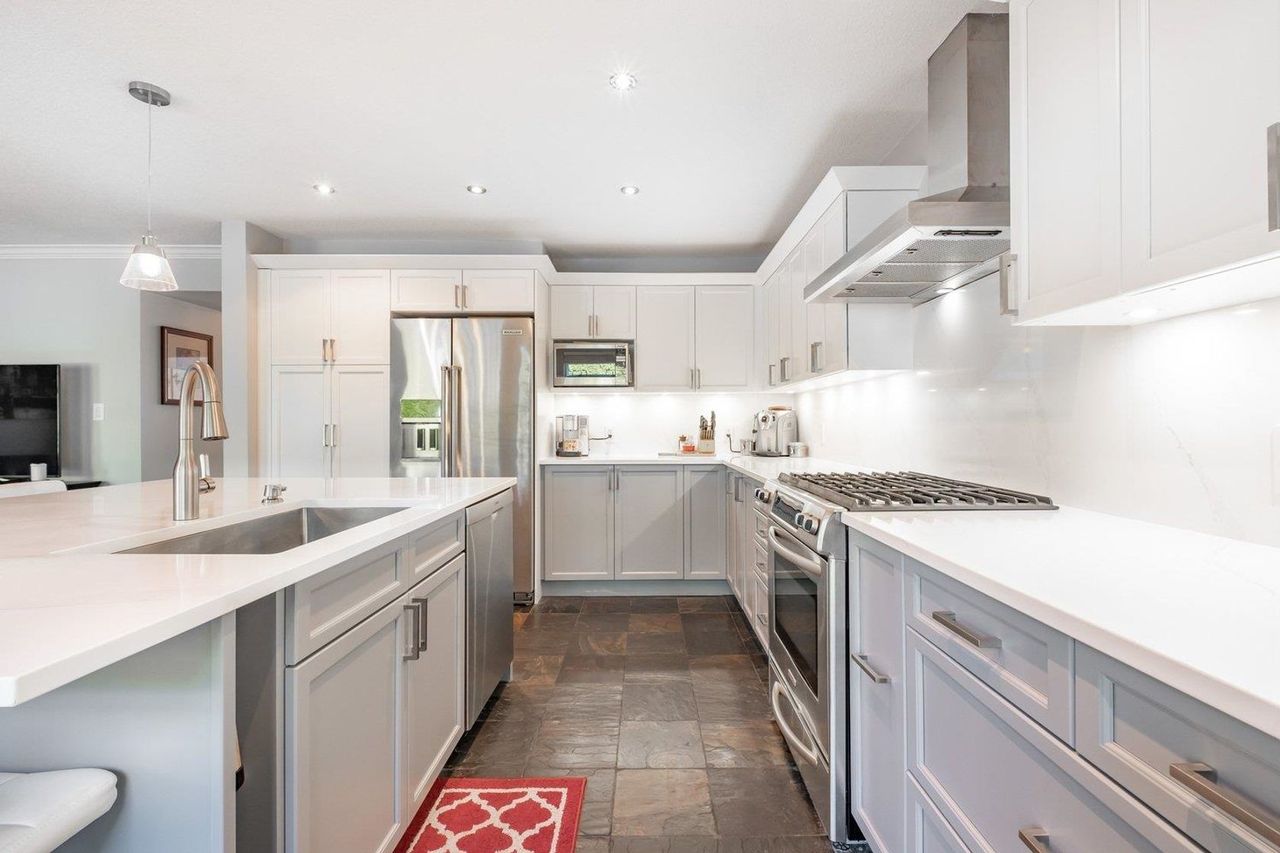 HUGE 4 BEDROOM 4 BATHROOM DUPLEX STYLE END UNIT TOWNHOME located at SOUGHT AFTER SALISH ESTATES 1. This gorgeous updated home FEATURES A NEWER KITCHEN, WHITE QUARTZ COUNTERTOPS, 8*5 FOOT BREAKFAST BAR / ISLAND, OVERSIZED commercial grade stainless steel under-mounted sink, tonnes of cabinet space with Sliders leading to your private deck with DUAL GAS LINE, perfect for BBQ’ing and PATIO HEATERS, open plan living / dining on the main with wood burning fireplace, MAPLE FLOORING, updated powder, crown mouldings…..3 bedrooms upstairs, MASTER WITH NEWER ENSUITE, walk in closet, downstairs features a large rec room and additional guest suite. The lower level has a walk out patio to the backyard and garden. 2 CAR GARAGE